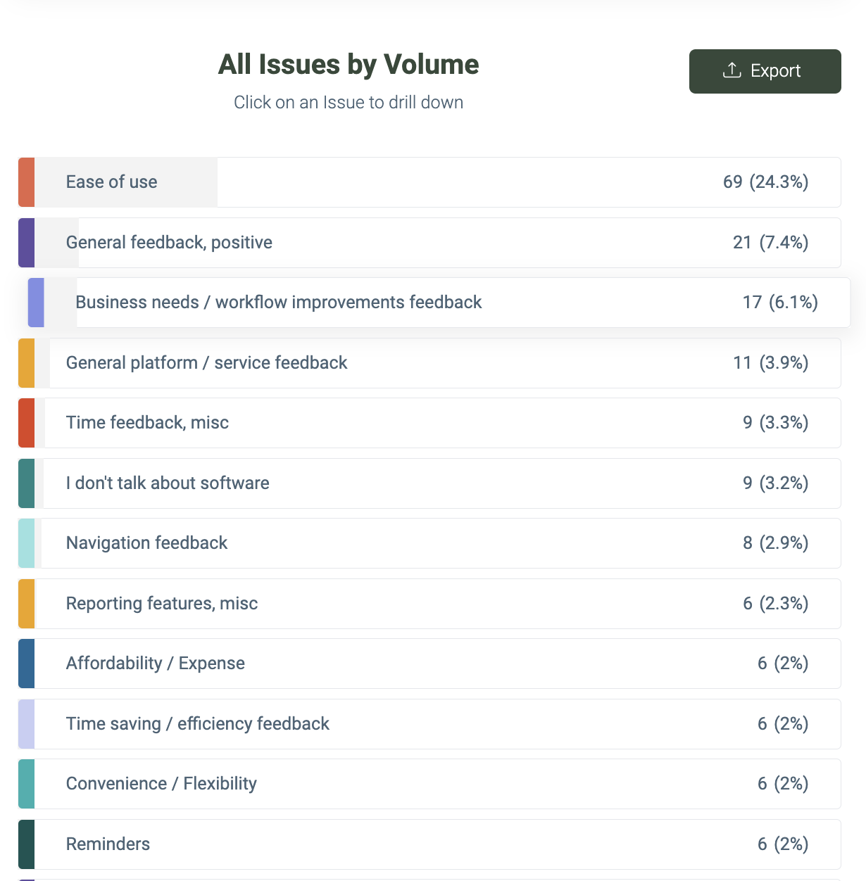 Create and apply custom Issue tags for more granular feedback categorization and analysis, allowing you to focus on the feedback labels that matter most to you.