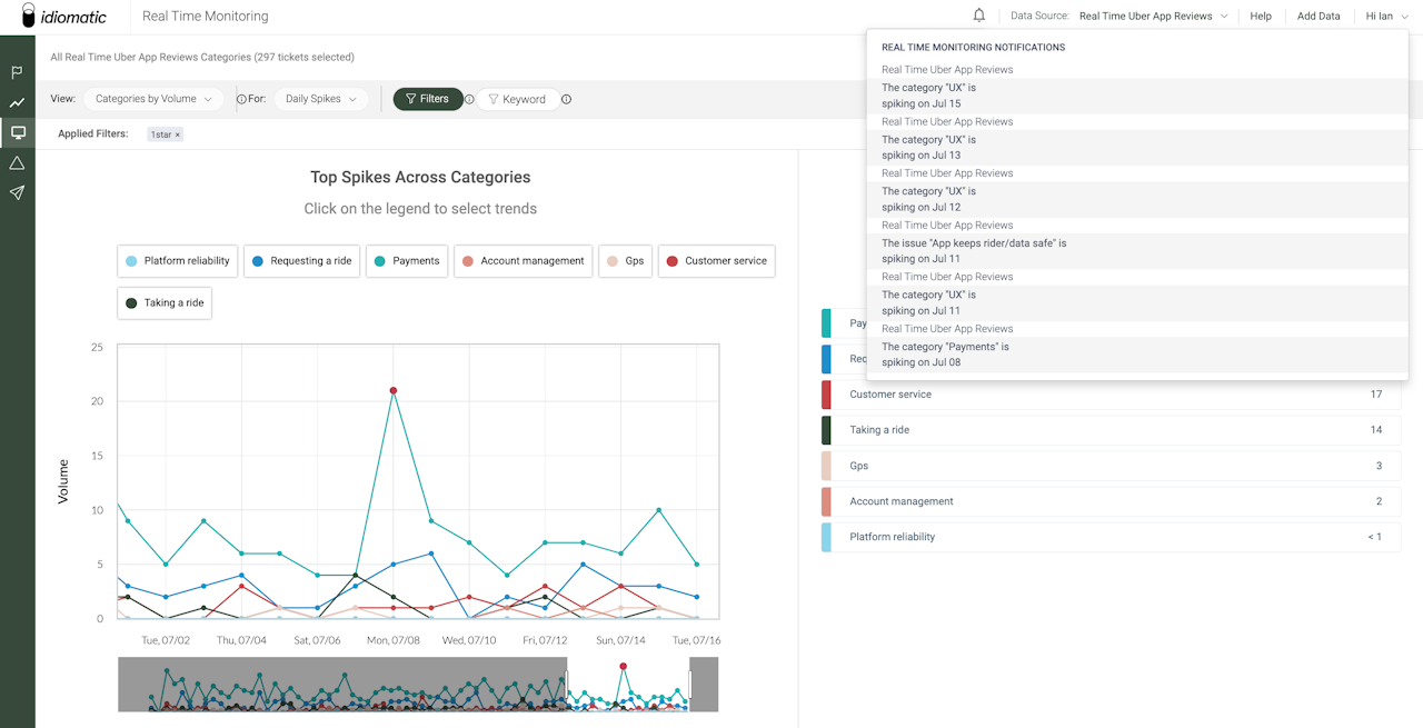 Data Source Integrations: Idiomatic integrates with various platforms to collect feedback from emails, chats, surveys, social media, and more, ensuring a comprehensive view of customer feedback across all touchpoints. You can also easily upload CSV files of feedback directly to Idiomatic.